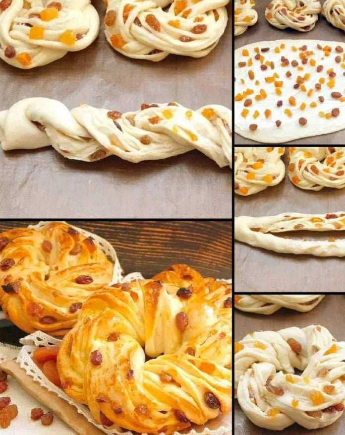 Булoчки из дрожжевого теста с изюмом и курагой.😋👌