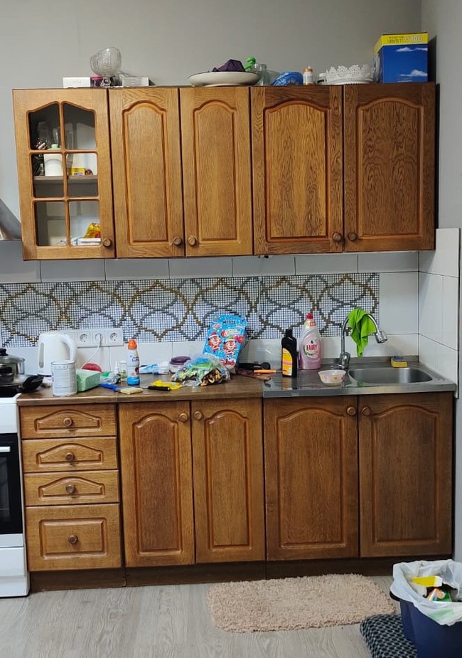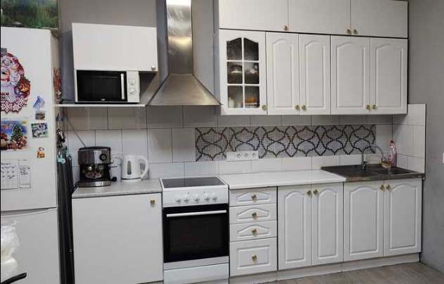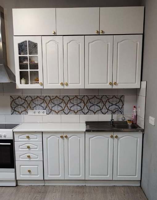 Также было решено увеличить объем гарнитура, за счет трех подержанных навесных шкафчиков, купленных на интернет-сайте, но в эту сумму они вошли.