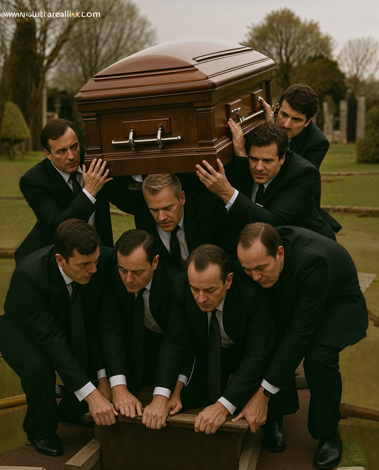 Атмосфера отражала скорбь: тяжёлые облака, влажный воздух и беспокойный ветерок, колыхавший деревья на кладбище. Сначала всё казалось обычным, просто ещё одно мрачное прощание — пока не потребовалось восемь человек, чтобы поднять гроб.