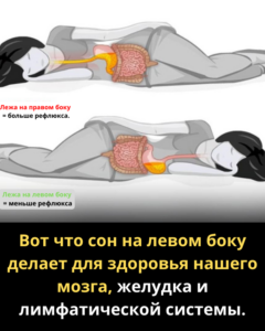 Улучшение пищеварения — сон на левом боку может облегчать такие симптомы, как вздутие, запоры и изжогу. Желудок находится с левой стороны, поэтому гравитация помогает пищеварению.