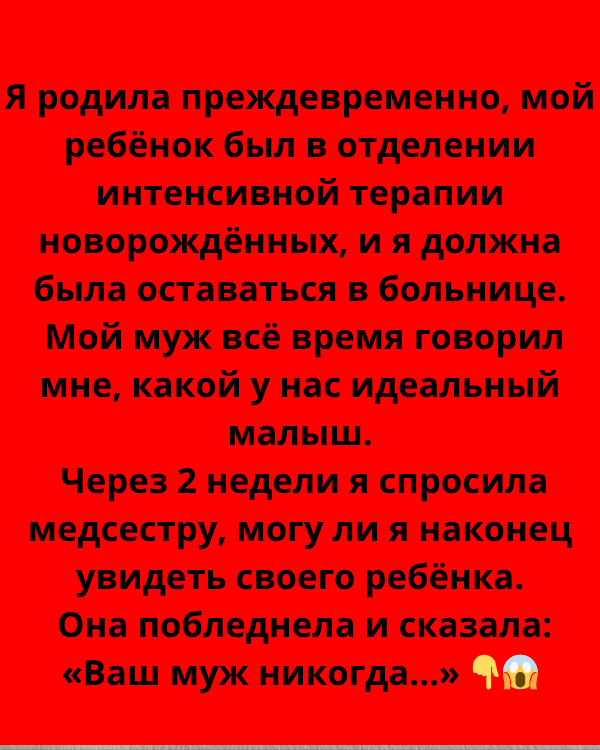 Я родила преждевременно. Ребёнок оказался в отделении интенсивной терапии новорождённых, а я осталась в больнице. Муж всё время говорил, какой у нас идеальный малыш.